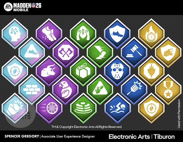 For the first time ever, Madden Mobile introduced Player Traits, and I was tasked with designing their visual system and in-game presentation. Traits are conditional abilities that enhance player performance in key moments, offering deeper strategy and customization. I created the iconography and UI to make these traits instantly recognizable and engaging for users.